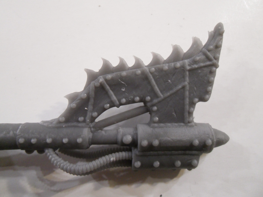 Die Figur stellt nun eindeutig einen Chaos Space Marine der Fraktion „World Eaters“ dar.
