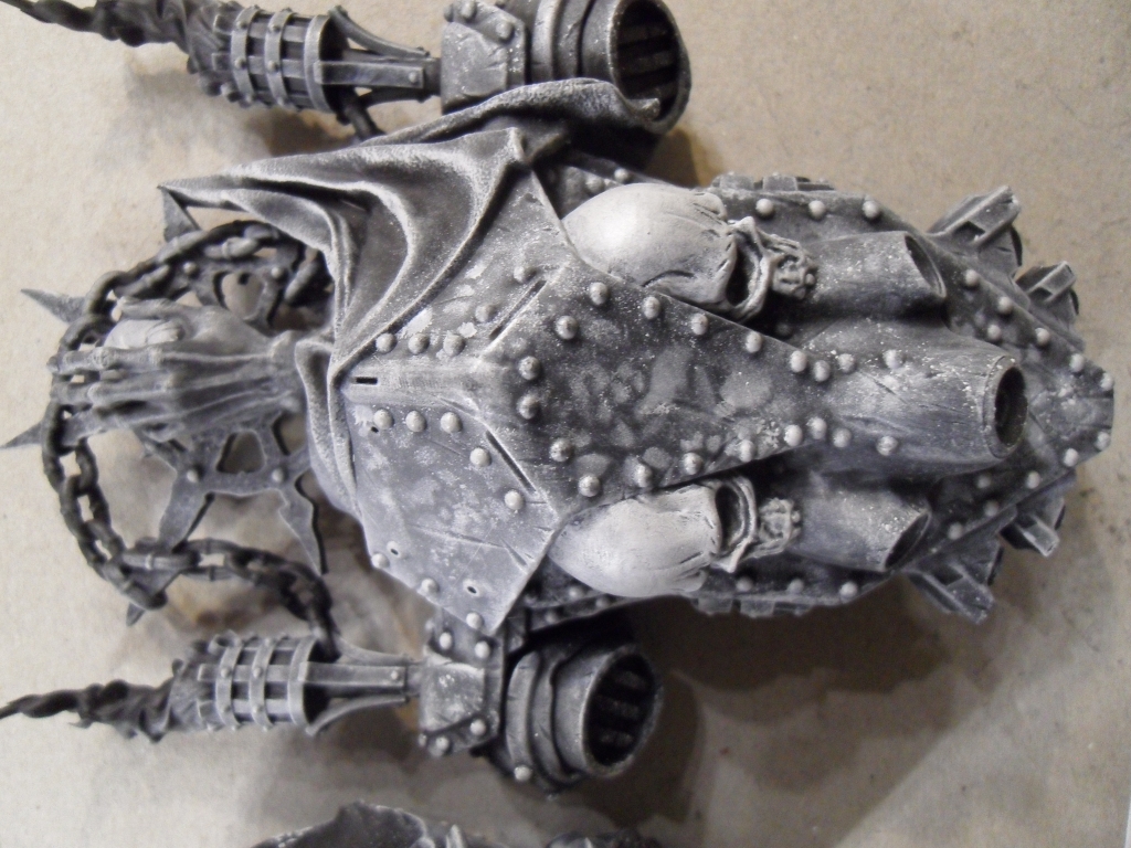 Der Bemalprozess beginnt mit einer mattschwarzen Grundierung. Matt deshalb, weil die Oberfläche rauer trocknet und dadurch beim späteren Trockenbürsten mehr Farbe haften bleibt.