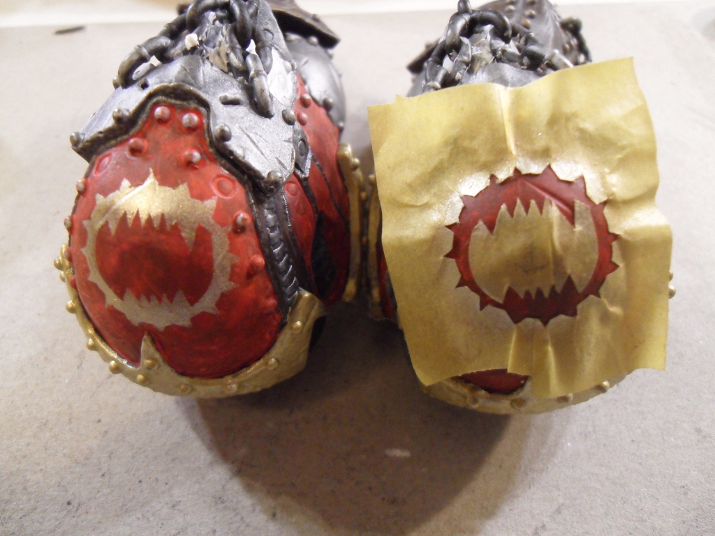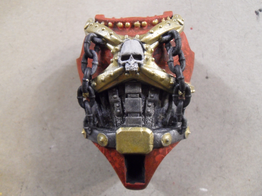 Zusätzlich wurden zahlreiche Nieten und Details mit Gold bemalt. Aufgrund der großen Anzahl und der geringen Größe ist dies ein sehr zeitintensiver Arbeitsschritt.